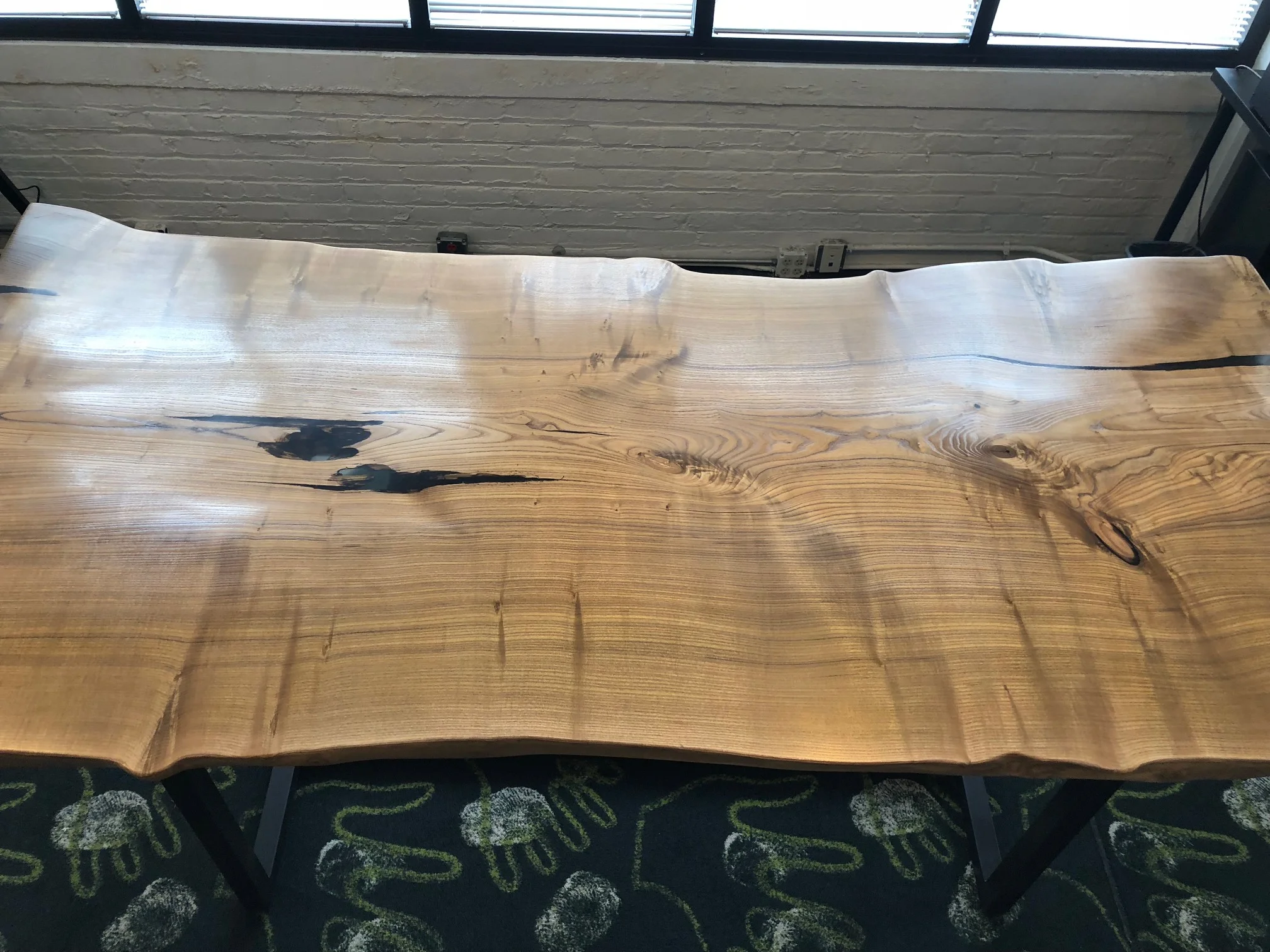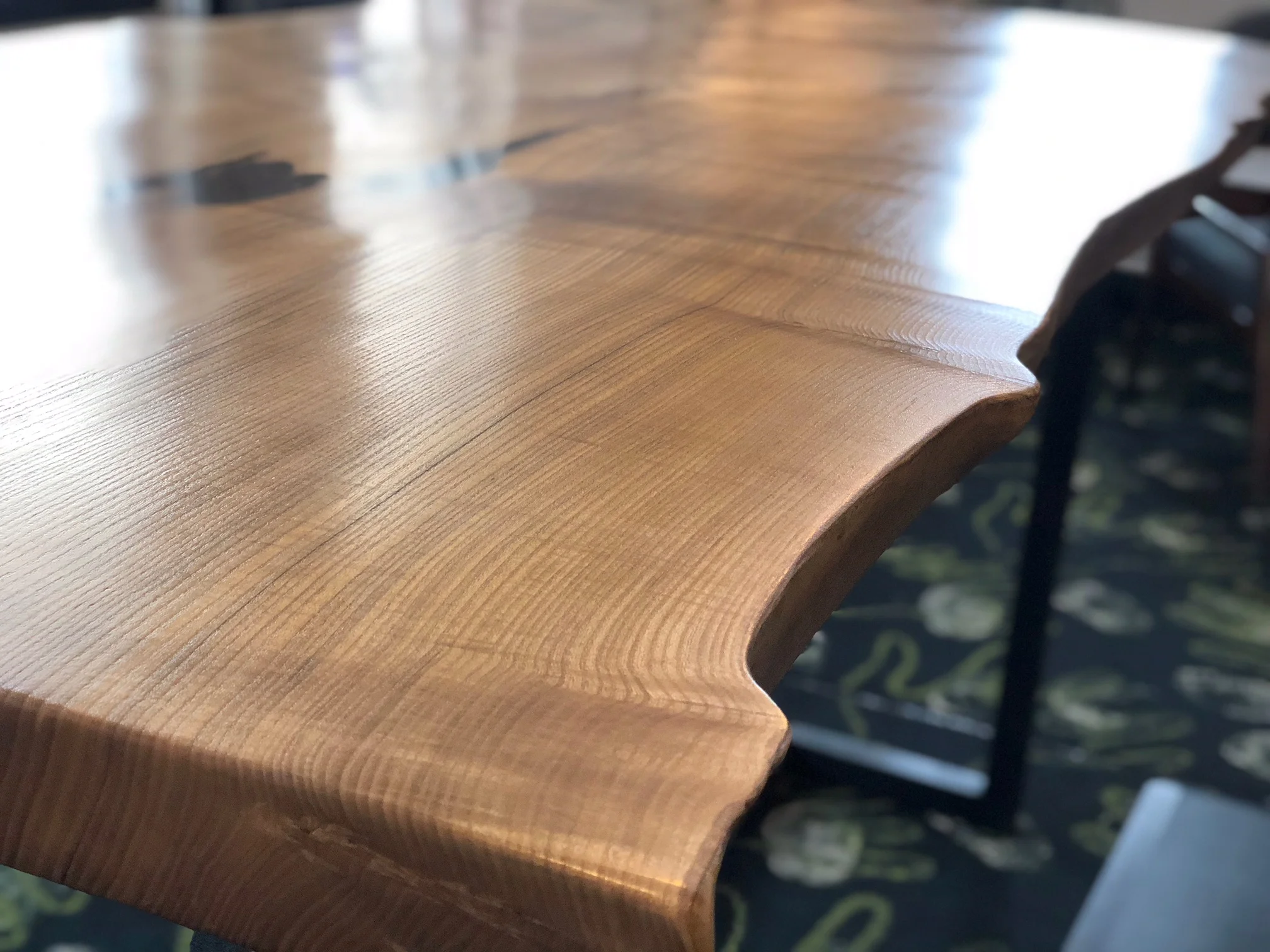 In August of 2018, Pixel And Timber acquired a striking, custom-built slab table from our friends and neighbors at Urban Timber. This giant table was crafted from a single 4 X 8 foot slab of catalpa, sealed with clear resin. Native to the US midwest, the catalpa is a large, fast-growing tree known for its shade-giving characteristics, its use in land reclamation, and as host for dozens of important species of pollinators, including the beautiful Sphinx Moth. We love the image of the catalpa as a meeting place and as the center of a community of natural “collaborators.” And for Pixel and Timber, that is exactly what this piece has become.